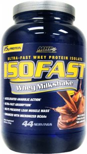 IsoFast Whey Milkshake information including description from MHP, supplement facts, and suggested use. ... Chocolate Milkshake 2.96 lbs. Retail Price: $79.99.