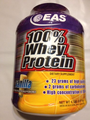 EAS 100% Whey Protein Vanilla 5lb DetailsDietary supplement. Naturally & artificially flavored. 23 Grams of high quality protein. Only 3 grams of carb