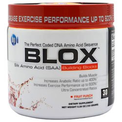 BLOX by BPI Sports. Fruit Punch Flavor. Size: 30 Servings. The Perfect Coded DNA Amino Acid Sequence. Silk Amino Acid (SAA) Building Blocks. Builds Muscle.