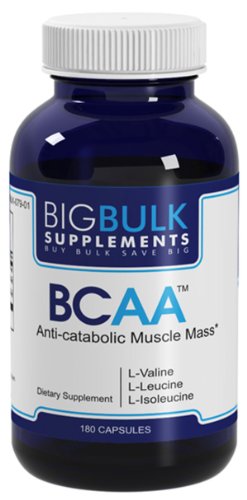 » BCAA Branched Chain Amino Acids L-Valine, L-Leucine And L-Isoleucine. Big Bulk Suplements 4:1:1 BCAA Ratio L Leucine 1200mg 180 Capsules 1 Bottle
